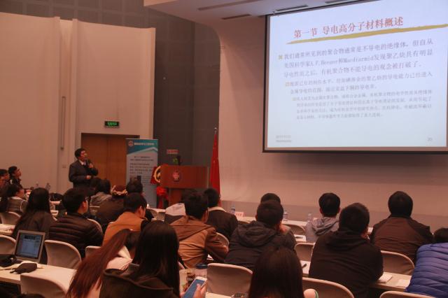 汪济奎教授围绕导电高分子材料做学术讲座。汪教授从自身的人生经历开始讲述,由浅入深地引导广大学子迈入材料专业领域,详细讲解了导电高分子材料及其应用,并深刻阐述了科研的重要意义,以及对新一代青年人所寄予的厚望。讲座的最后,对同学们的踊跃提问进行解答。