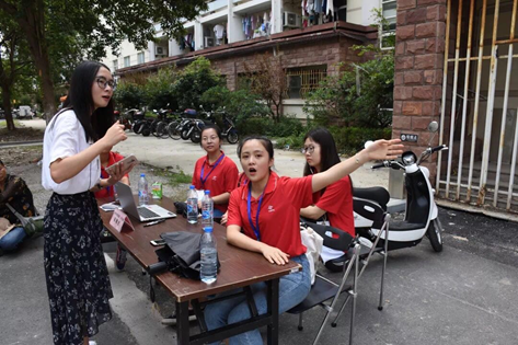 忙碌的地方不只有老员工活动中心,同样也有宿舍区,宿管阿姨和家长们亲切交流,努力做好宿舍公寓内的各项服务。材料公司团委员工会也同样派出了十余名志愿者,他们在宿舍区设置了咨询台,为家长和新生答疑解惑,并提供了搬运行李的服务,为家长带路参加家长会,得到了家长和新生的一致好评。