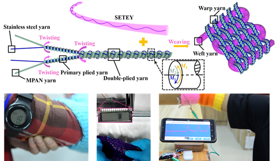 (发电纱线的纺制流程与实物照片)