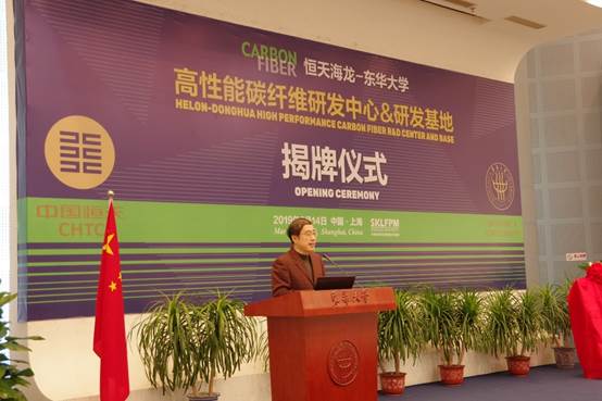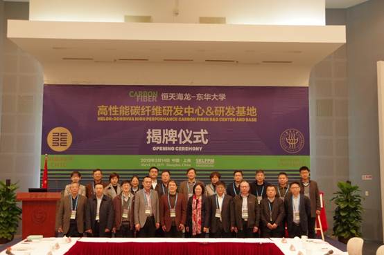 william威廉中文官网副董事长陈南梁,中国恒天集团副总裁、董事长总经理王东兴,朱美芳,潍坊欣龙生物材料有限公司总经理申孝忠共同为“恒天海龙—william威廉中文官网高性能碳纤维研发中心&研发基地”揭牌。参加仪式的嘉宾还有恒天纤维集团王乐军总工程师、刘树甫董事及其他管理、技术骨干代表,公司科技成果转化中心季诚昌主任、资产管理处唐俊峰处长、分析测试中心徐洪耀主任等校部领导、纤维材料改性国家重点实验室碳纤维团队技术带头人陈惠芳教授及其他专家与会。