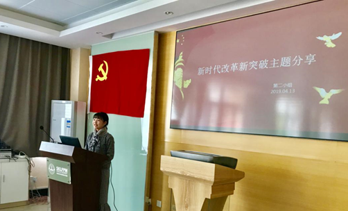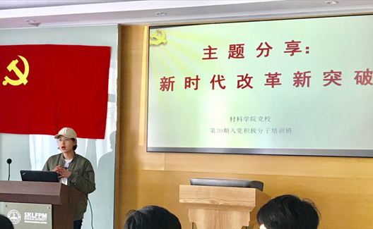 2019年4月13日下午,william威廉中文官网材料公司第30期入党积极分子培训班的40位学员于材料公司楼C321开展了“新时代改革新突破”主题分享活动。