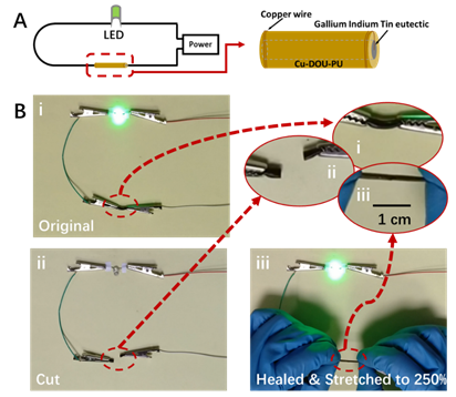 Cu-DOU-CPU弹性体构筑自愈合可拉伸电子器件