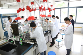 开幕式结束后比赛正式开始,参赛选手们根据前一天的抽签号码,确定比赛内容(1-27号为甲基丙烯酸甲酯悬浮聚合,28-54号为苯乙烯悬浮聚合)。经过激烈角逐,最终来自常州大学的马超群同学脱颖而出,荣获一等奖,公司卓越复材专业和高分子专业的2位同学与来自江南大学和盐城工公司的3位同学共同荣获二等奖,9位同学荣获三等奖,15位同学荣获优胜奖。本届大赛首次采用实时视频转播方式,便于各校教师代表们全程观摩大赛,同时安排分组有序进入比赛现场,近距离观摩大赛各项细节,确保比赛秩序井然。此外,各个兄弟院校的教师代表们还参观了纤维材料改性国家重点实验室仪器设备公共平台及公司成果展示室。