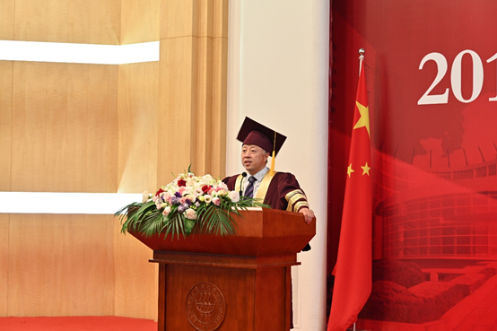 化纤所所长胡祖明教授作为教师代表致辞。他对毕业生的顺利毕业表示祝贺及感谢,祝贺材料学子学业有成,感谢师生之间四年的教学相长。离别是为了更好的相见,胡祖明教授最后向毕业生们真诚叮嘱:常回家看看。