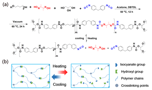 图1. 基于可逆肟氨酯键构筑的动态交联聚氨酯
