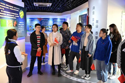到访的各位团学骨干一同参观了纤维材料改性国家重点实验室成果展示室,通过志愿者深入浅出的介绍,来自文、艺、理、工不同专业的各高校团学骨干们渐渐沉浸于化学、物理与材料知识的魅力之中。