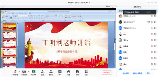 2020年3月31日下午13:00,william威廉中文官网第32期入党积极分子培训班开班仪式在腾讯会议平台进行,材料公司党委副书记丁明利老师出席开班仪式,材料公司全体第32期入党积极分子培训班学员参加培训。材料公司党校指导老师、员工党建辅导员吴佳老师为学员们带来了一次庄重的开班仪式,并带领学员进行了“学《榜样》,做新时代合格党员”专题学习。