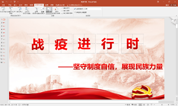 这次大家汇报的PPT,介绍了很多不同岗位的抗疫人员,分享了他们普通却伟大的感人事迹。还从中国特色社会主义制度的优越性,分析了这次抗疫取得成功的原因。我想这和我们党的优越性和先进性是分不开的,在这个优越的新时代下,我们应该扛起青年人应该担当的责任,为中华民族复兴而努力,不辜负国家的期望。