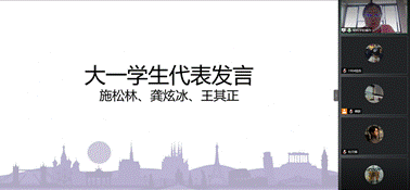 在交流分享环节,三位优秀的大一员工代表先后发言。施松林同学分享的主题为“人生的意义”,她从高中进入大学之后的心路历程,在东华的学习与生活中,她逐渐懂得了要认清自我,明确目标和身体力行,积极参与员工工作充实自我,用大学四年的努力来塑造一个更加优秀的自己。龚炫冰同学分享的主题为“升学”、一种向更高目标追求的路径,他认真搜集了关于报考研究生的资料,通过对比本硕员工的优劣势以及分析近年来报考研究生的热度增加、难度加大的情况,为同学们讲述了如果想成为一名研究生,需要怎样努力奋斗来实现。王其正同学分享的主题是“奋斗”,借助6岁网络明星miumiu演奏《加州旅馆》的视频,与同学们强调了后天努力的重要性。00后作为“后浪”,又会被10后的“后浪”所碾压。要明白,当前的社会上,“别人比你聪明不可怕,可怕的是比你聪明的人比你还要努力”。对此,他与同学们共勉:面对这种碾压、大一员工也不要气馁,我们只有努力才能破除阶层固化的虚幻、只有通过自己的双手才能获得幸福的未来。