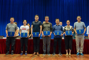 在迎新大会上,公司党委书记戴蓉还向各位新生介绍了公司博导班主任和企业家导师制度。材料公司早在2008年就开始启动博导班主任制度,2018年还增设青年教师作为助理博导班主任,一同加入到全员全程全方位育人的大队伍中。截至2020级,已有66位教师担任128人次的博导班主任及助理博导班主任。为使公司本科生能够更早地了解社会需求,有针对性地开展职业生涯规划,在员工们的支持下,公司于2015年启动了“伯乐计划”,并于2016年正式为2014级本科生配备了企业家导师,截至目前,共有聘期18位企业家担任30人次的企业家导师,今年公司继续邀请了8位优秀企业家担任企业家导师。戴蓉与副经理马敬红、副经理廖耀祖和李光教授一同为参加会议的博导班主任、班导师和企业家导师们颁发了聘书。