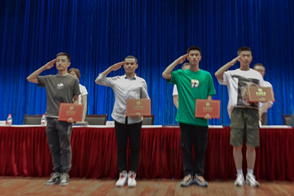 今年9月,公司共有4位优秀学子光荣退伍,返回母校继续老员工活。为鼓励新生向优秀学长看齐,积极报名参军入伍,为国防建设奉献青春,公司还特别邀请4位同学来到迎新大会现场,并为他们颁发了“服务国防标兵”荣誉证书。“敬礼!”4位同学动作整齐,面向全体新生和老师敬礼,现场响起热烈的掌声。