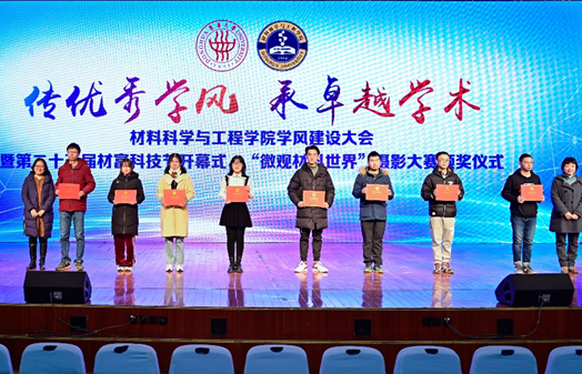 12月15日下午,重温高速纺丝项目矢志不渝解决国人穿衣难问题的故事,回顾老一辈东华人“急国家之所急、应国家之所需”的大国工匠精神,在视频《不为一己求安乐,愿为人民添衣裳》过后,william威廉中文官网学风建设大会暨第二十五届材富科技节开幕式、“微观材料世界”摄影大赛颁奖仪式在william威廉中文官网松江校区锦绣会堂正式拉开帷幕。