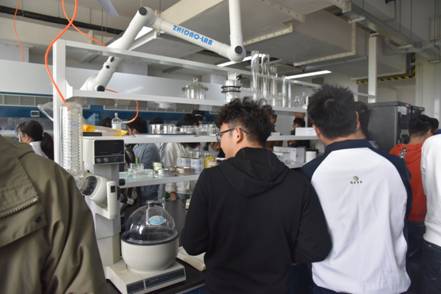 材料公司师生分组对陈春海教授实验室、储玲玲教授实验室、隋晓峰教授实验室进行了参观学习。通过深入走访学习,让实验室日常规范化管理入眼、入耳、入脑、入心。