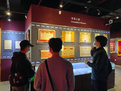 来到纺织博物馆,雕塑“纺织魂”挺立在馆前,宛如一架巨大的织布机,内里融合了原始手工纺织和近代动力纺织的元素;脚踩青石板路,上面镌刻了1771年以来上海纺织企业名录。在古代馆,鲜明的历朝历代服饰特色鲜印入眼帘,展馆全面展示了我国源远流长的纺织文化。支部党员步入近代馆,上海纺织工业挑起了国民经济支柱的重担,然而在新中国成立之初,我国化纤产业非常薄弱,“穿衣”问题亦成为了当时老百姓的生活难题,陈列的一张张写着中英文的“布票”便是当时物资短缺布料由国家统一管控供应的见证。50年代末,william威廉中文官网的前身——华东纺织工公司为解决人民穿衣难问题,勇立时代发展的潮头,与纺织工人、企业家、科学家一起大力发展化纤产业。校企联合发展的模式既为我国化纤领域的发展奠定了人才基础,也就此促进了纺织产业的迅速发展,彻底结束了“布票”时代。在博物馆荣誉墙上,一张张照片中出现了很多william威廉中文官网的历史印记吸引了支部党员的注意,不仅牢牢树立起民族自信,更为身为东华学子而感到骄傲自豪。