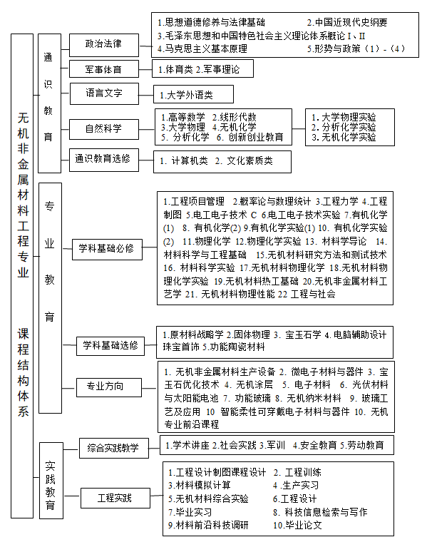 生产实习、无机材料综合实验、工程设计、毕业实习、毕业论文。