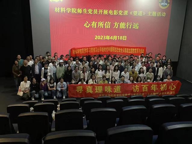 为深入学习贯彻落实习近平新时代中国特色社会主义思想,4月18日下午,材料科学与工程公司党委组织师生党员前往五龙广场DFC影城,开展电影党课《望道》主题活动。