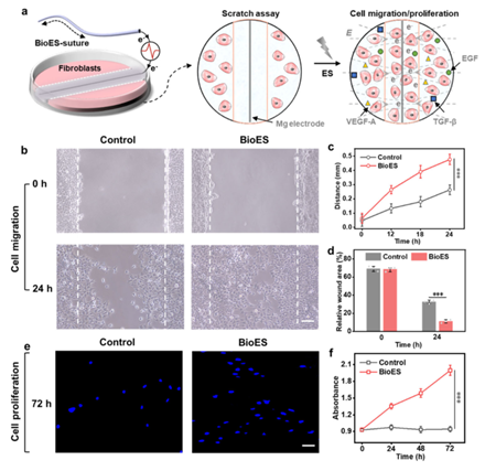 (BioES-suture提供的电刺激对成纤维细胞行为的影响)