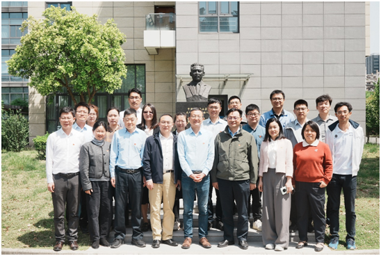 双方在上海化工研究所奠基人吴蕴初铜像前合影
