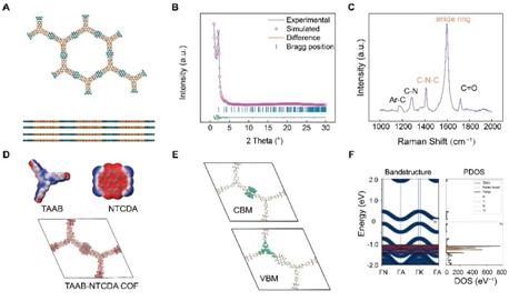 图2双极性TAAB-NTCDA COF的结构特征及理论算的电子性质